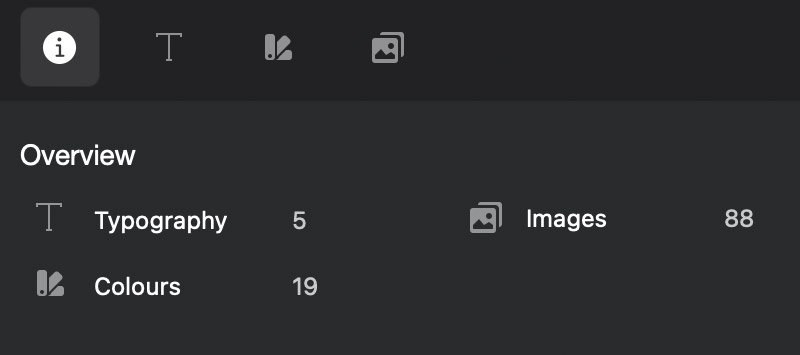 Once the extraction process is complete, the overview displays a summary of all collected resources, including images, colours, and typography.